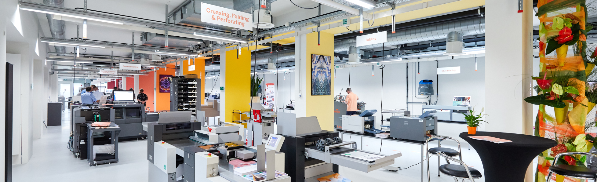 - Industriële vouwmachines die zeer gemakkelijk te bedienen zijn. Geschikt voor het vouwen van producten met hoge precisie en prestaties zoals katernen en flyers van kleine tot zeer grote oplages.