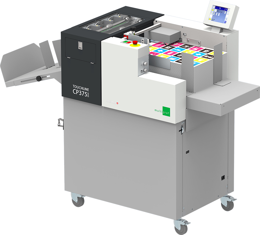 De CP-375 Touchline is de meest veelzijdige ril-, perforeer- en vouwmachine op de markt. Op de dwarsrichting wordt er tot 20 keer gerild of geperforeerd. In de doorvoerrichting kunnen tot 4 perforeerposities geplaatst worden. Het perforeren kan in beide richtingen ook worden onderbroken.