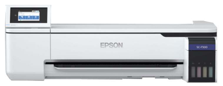 L'imprimante à sublimation Epson SureColor SC-F500 24 pouces est conçue pour aider les agences de marketing, les laboratoires photo, les fabricants de vêtements et les ateliers de reprographie à offrir plus de choix à leurs clients grâce à une impression flexible et de haute qualité.).